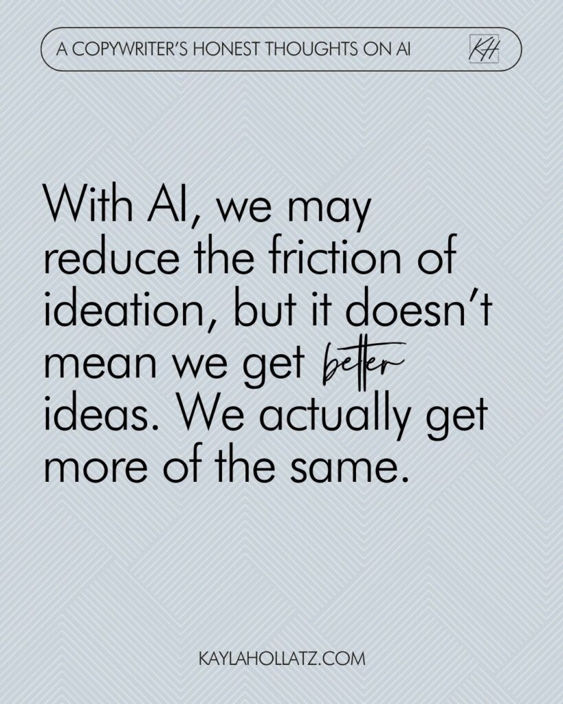 By using AI, we may reduce the friction of ideation, but it doesn’t mean we get better ideas. We actually get more of the same.